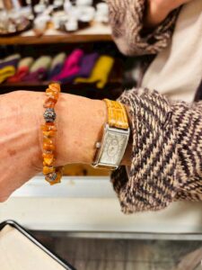琥珀とカレンシルバーを組み合わせたブレスレットを