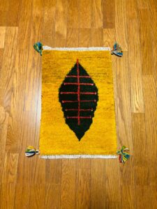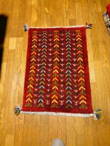 今回は、白地に赤と緑が映える珍しい生命の木のギャッベを