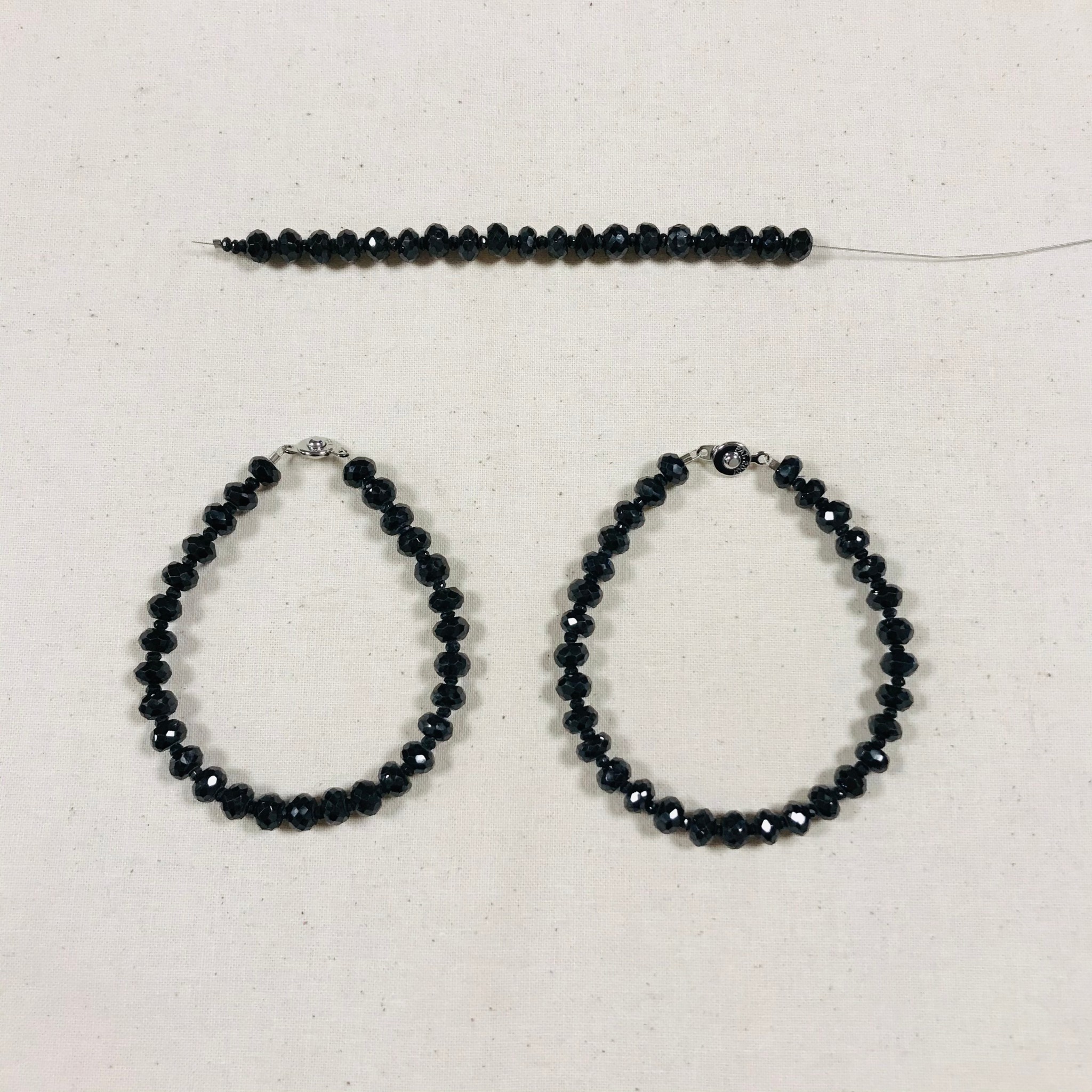 ・ご主人様のブラックスピネルのネックレスを、ご主人様と奥様のおそろいのブレスレットにリフォームしました。