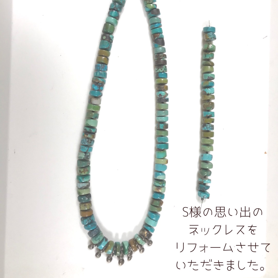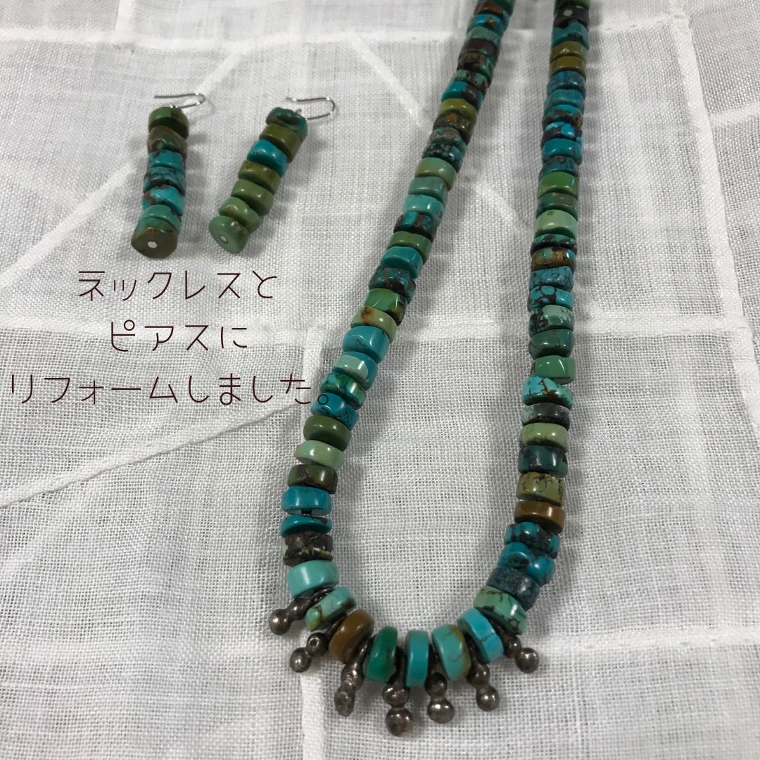 ・S様の思い出のターコイズネックレスを、ネックレスとピアスにリフォームしました。