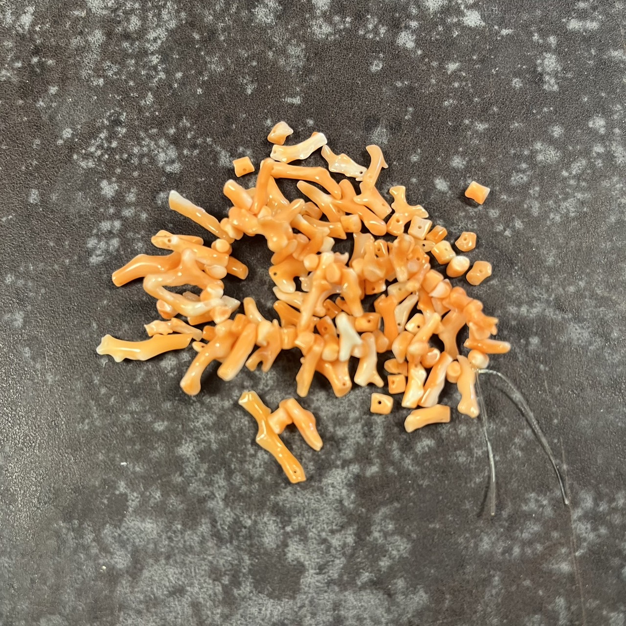 ・切れてそのままになっていた珊瑚をピアスに加工しました。