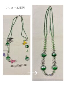 ・アクセサリーリフォーム。ゴムブレスレット・ネックレスに。